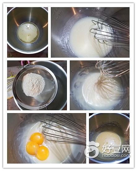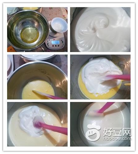B:玉米油50g,纯牛奶50g,细砂糖20g,低筋面粉45g,蛋黄50g。