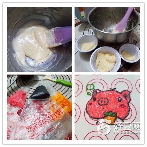 6、 打印好直接喜欢的图案,放在硅胶垫下面,先用黑色面糊描边,然后填充喜欢的颜色就ok了。