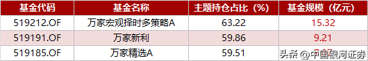 万家宏观择时多策略A、万家新利、万家精选A等。