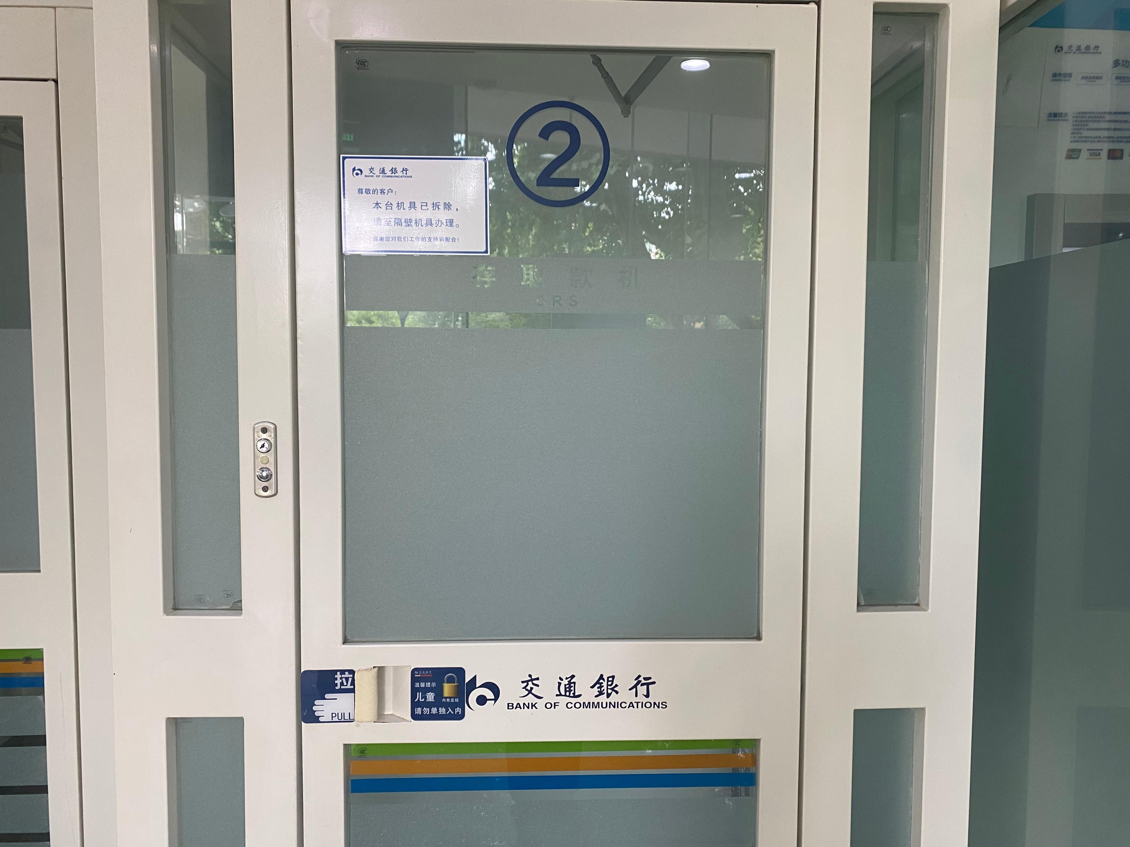 我行营业部自助区原来有4台设备,由于近年使用量不断下降,在更新机具的时候就拆除了2号设备间的一台机器。因防护舱是整体设计的设备,无法单独拆除其中的一间,我们当时拆除了机器的铭牌,并锁闭了舱门,但舱门上未张贴提示标志。(上线直播后)我行第一时间已经在舱门上张贴了打印的提示语,立即联系广告公司制作统一标准的提示标识,目前制作好的标识已于7月1日上午11点前张贴完毕。