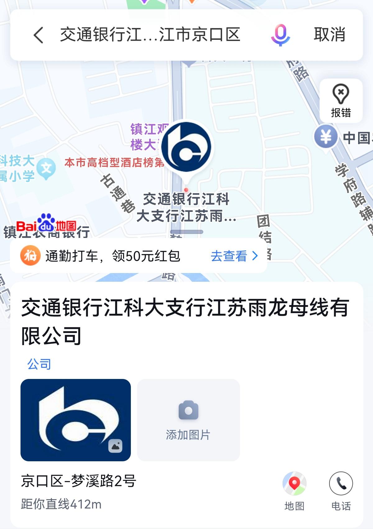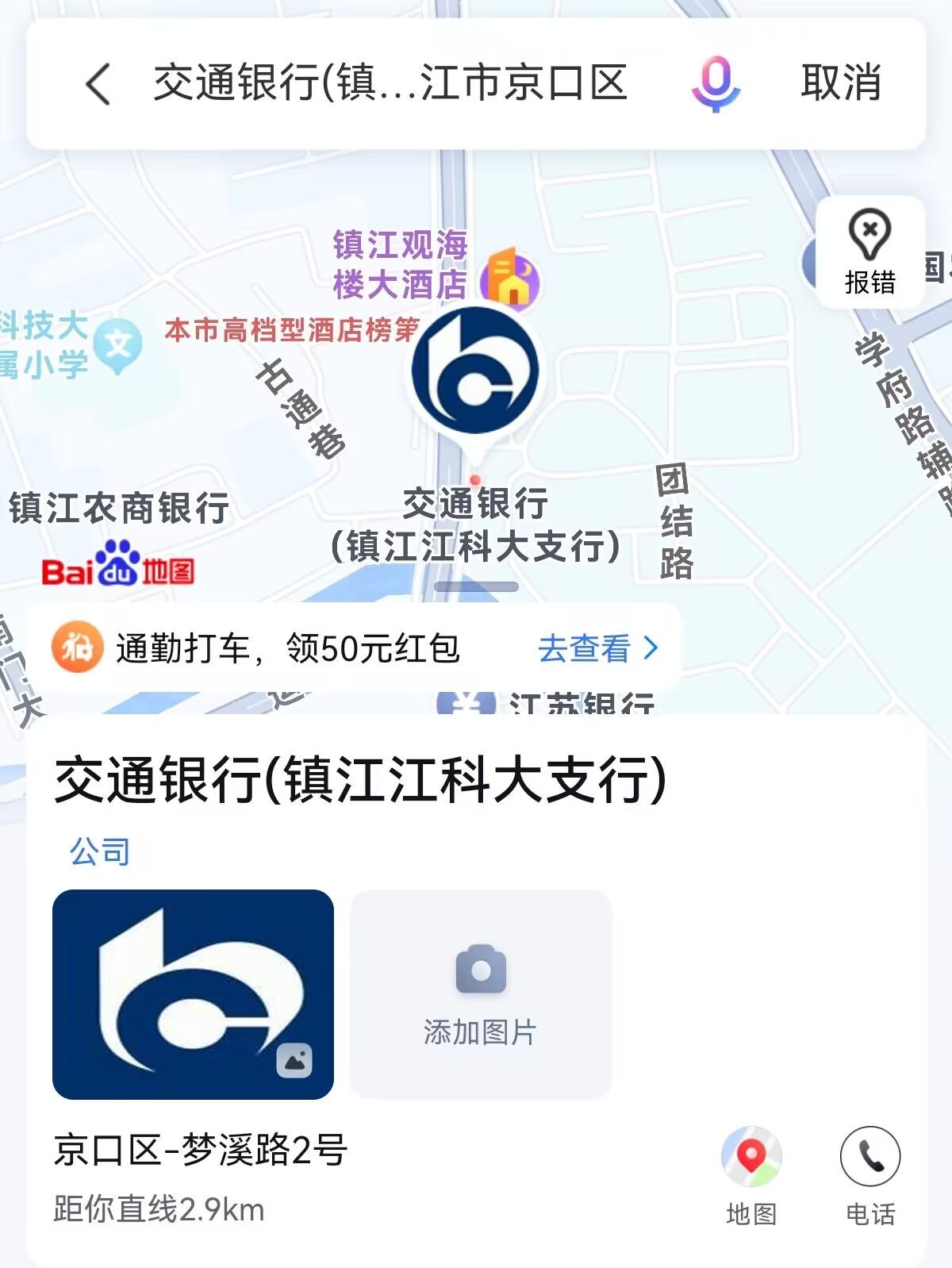 6月28日交通银行镇江分行上线直播中,网友“巫浅浅”反映,他在百度地图上查询到“交通银行24小时自助银行(镇江正东路支行)”、“交通银行24小时自助银行(学府路)”,但是去现场发现两个自助点都撤销了。另外,百度地图上显示“交通银行江科大支行江苏雨龙母线有限公司”,江科大支行后面接着一家公司的名字。