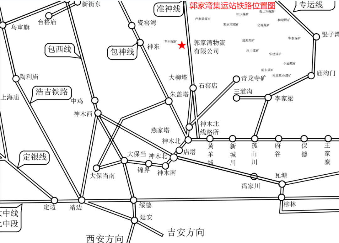 公司发运可经包西线下行发往陕南各地及川、渝、云、贵、皖等地,可经太中银线、瓦日线发往山西、山东、河南,也可经浩吉线发往“两湖一江”,是煤炭发运理想集散场地。