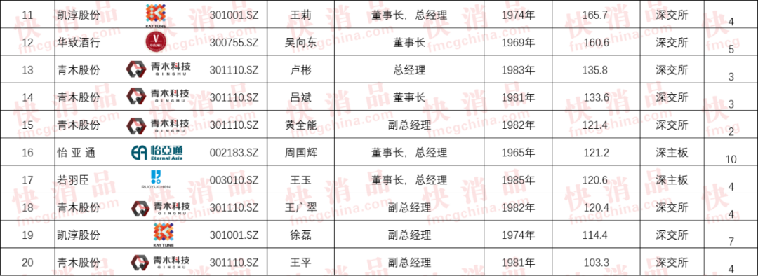 (快消品独家讯)随着各上市公司2022年业绩的陆续公布,公司高管们的薪酬情况也揭开了面纱。东方快消品中心同行业领先的全媒体《快消品(网)》汇总了在上海、深圳、香港、北京上市的350余家大快消相关公司高管的年薪总额并排序,选取年薪前100位高管,独家公布“