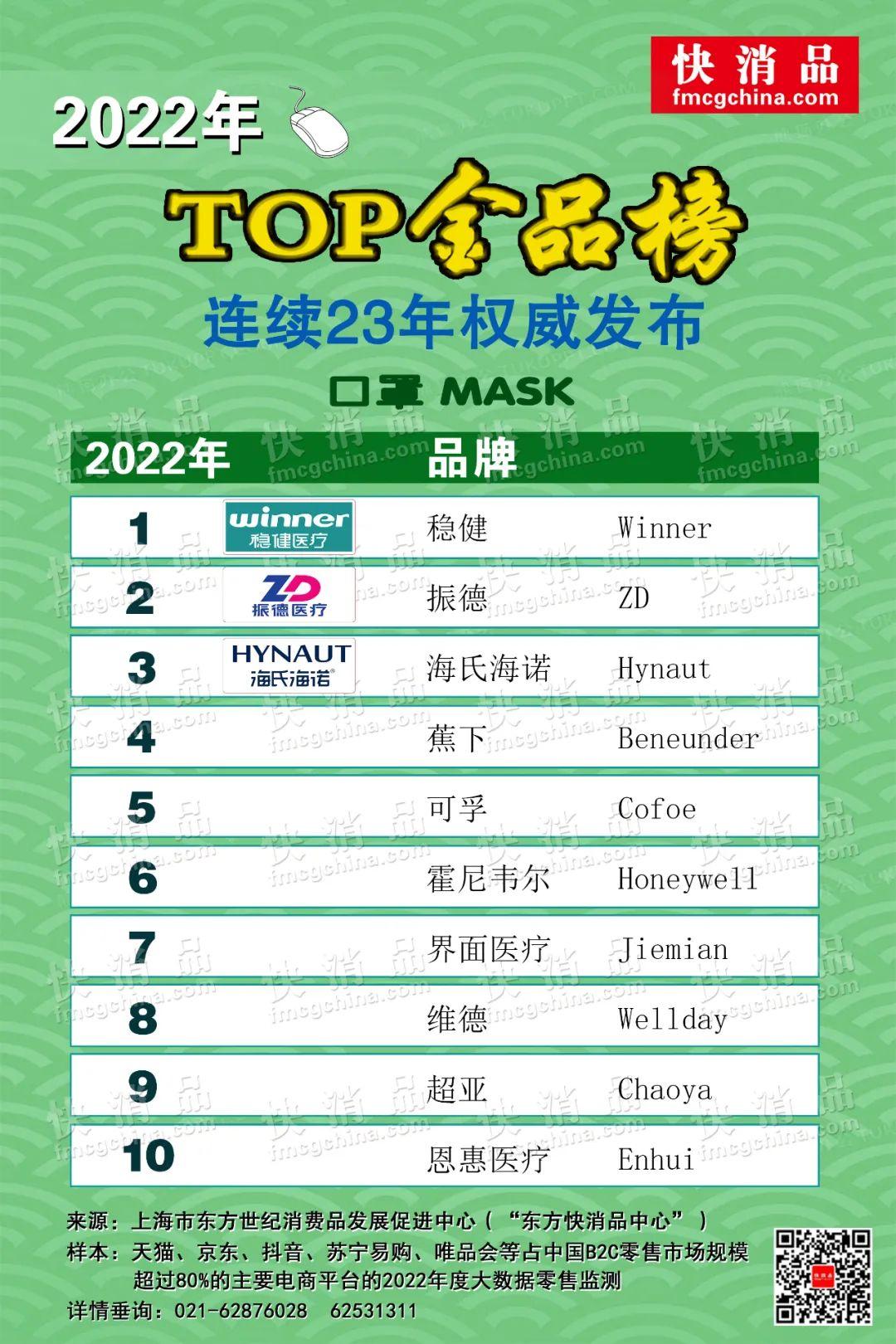 紧随其后,振德鱼型KN95口罩入选京东年度金榜单品,单年京东渠道累计销售额1.93亿,同比增长38.8%。第三名