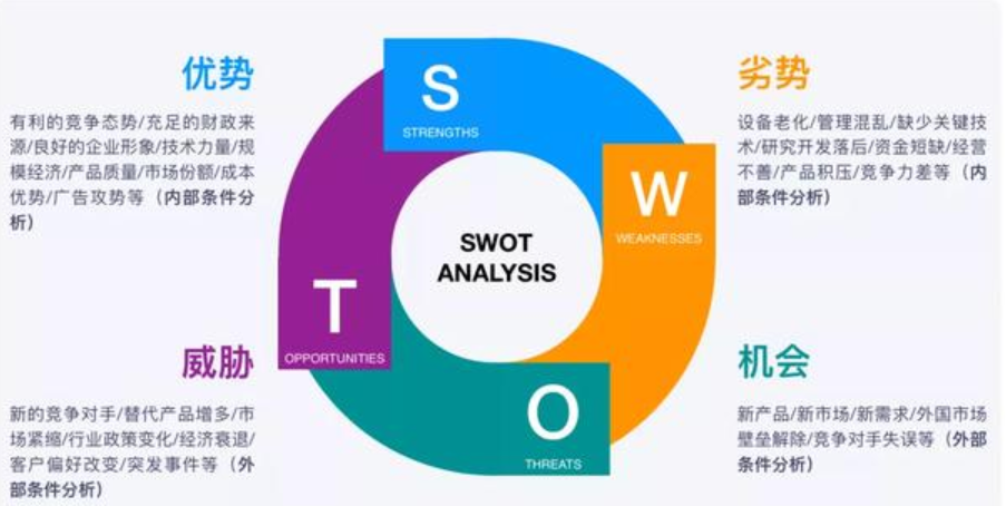 在这部分内容中,我们可以用SWOT分析去梳理自己的思路。