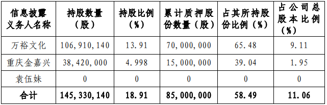 2020年3月,因触发协议约定的违约条款,万裕文化被动减持了部分质押给第一创业证券的公司股份457.67万股,占总股本的0.60%。