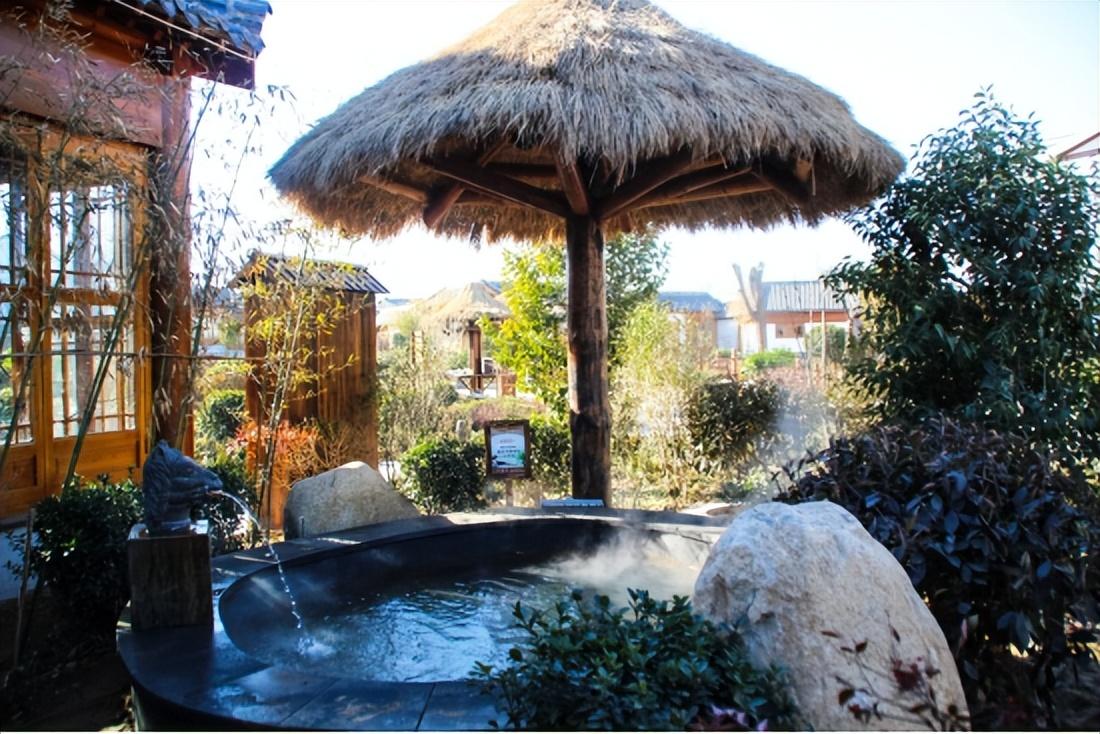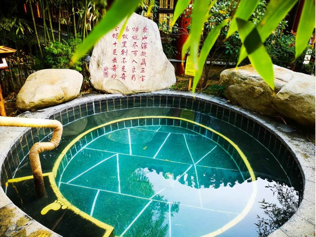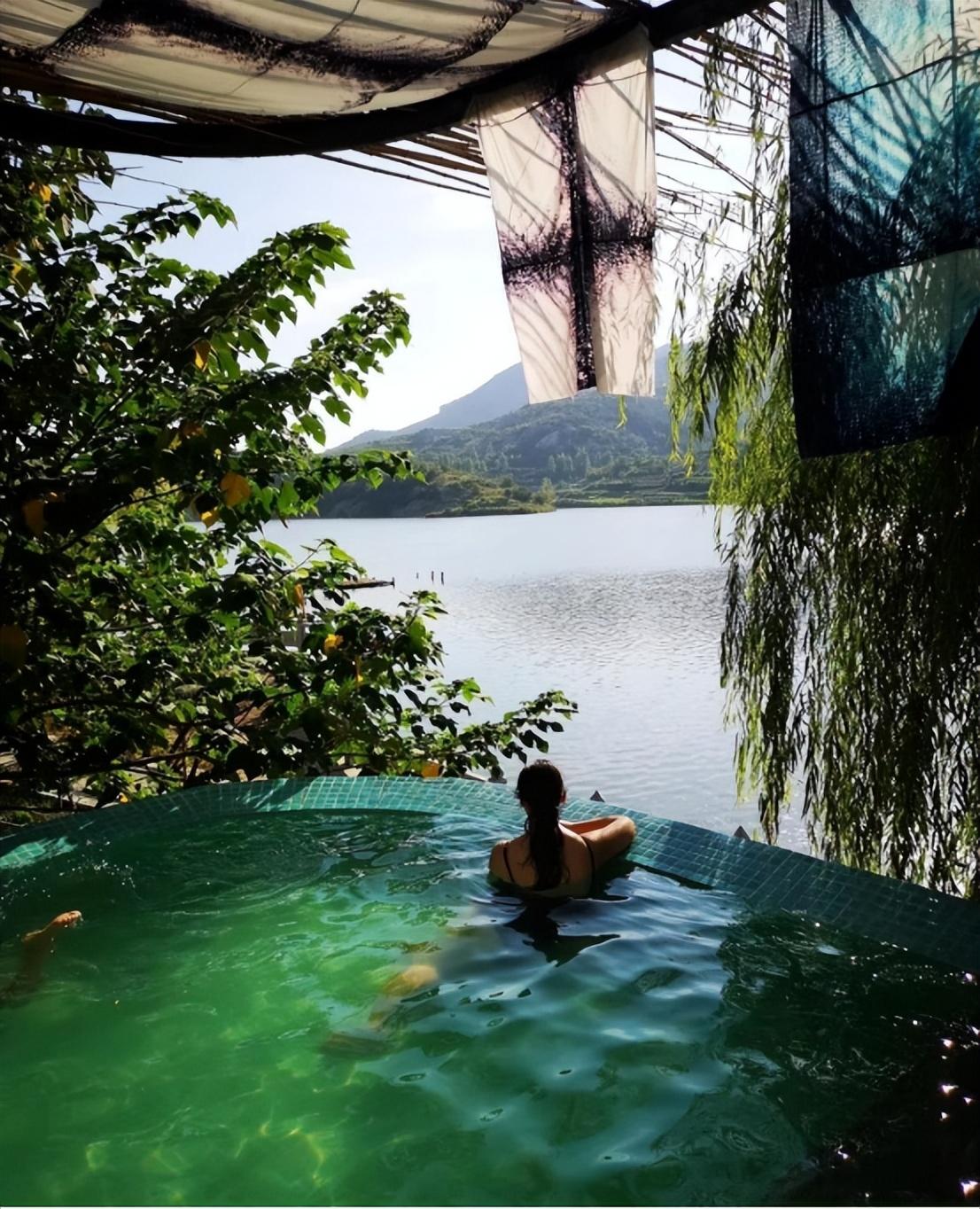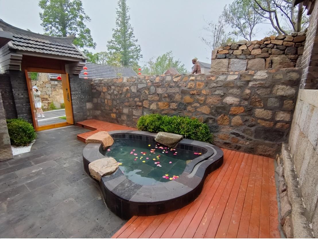 闭目凝神自在呼吸,山河美景触手可及。天台山温泉位于太阳客栈的庭院内,环境清幽。