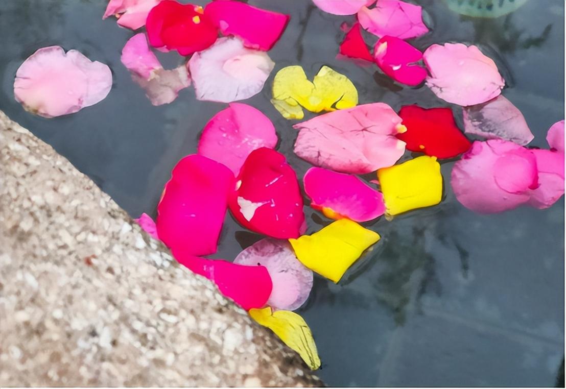 每个民宿院子内都有一眼热气腾腾的温泉,片片花瓣散落水中,足以撩起你满满的少女心~